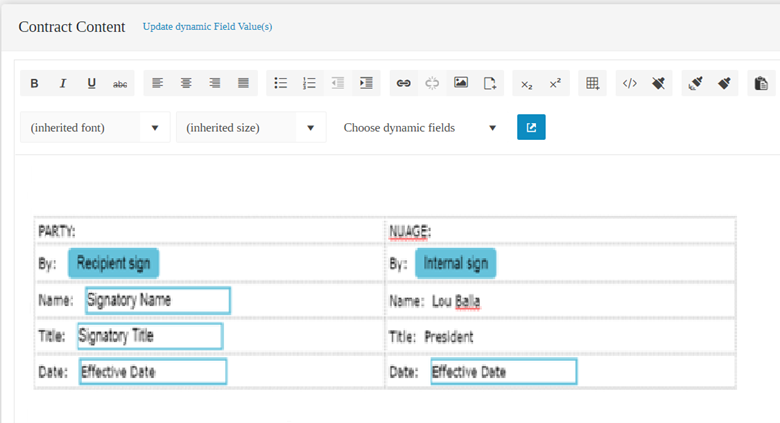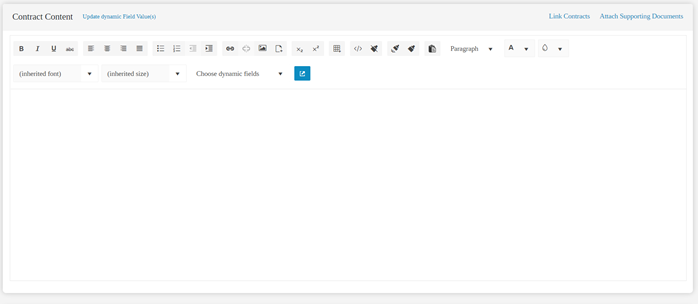 On the Contract Content section, users can update the contents of the Dynamic Fields to customize the new Contract.