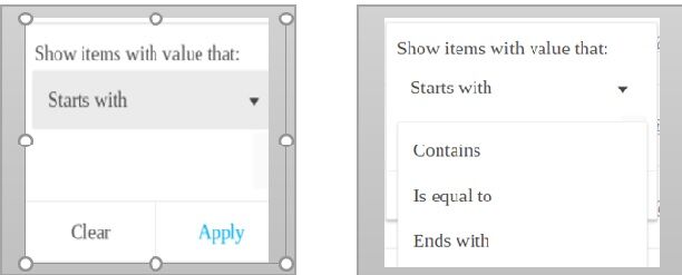 - If there are pages of records on the list, users can apply a column filter ( ) during the search. Users can combine the options for the column filters to narrow down the search.