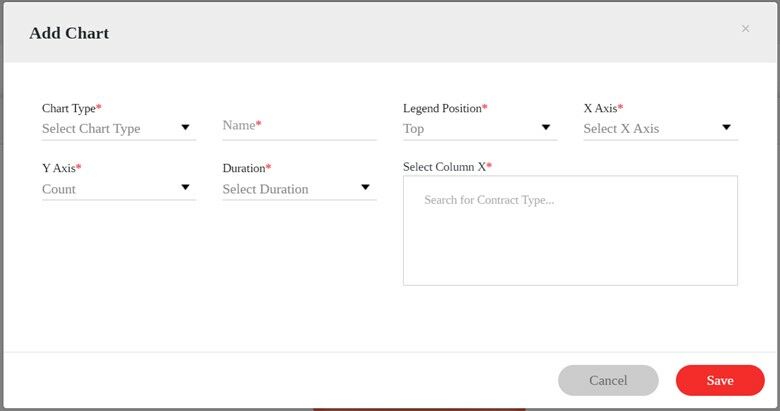 To create a chart, navigate to Reports > Chart tab and click the Add button. A pop up will appear.