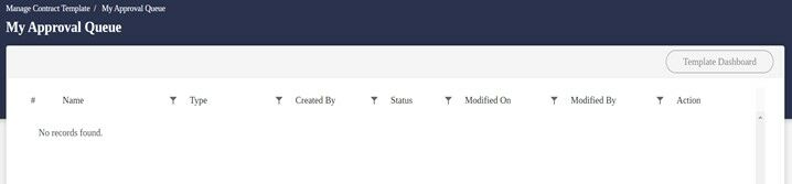 My Approval Queue allows contract Approvers to examine the Contract Template that they need to approve. Once the Approver reviews and validates the Contract Template, the Approver may choose to Approve or Reject the Template.