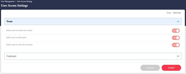 - Once the User’s access setup is complete, click Submit to save. System Administrators can modify User’s Access Settings at any time.
